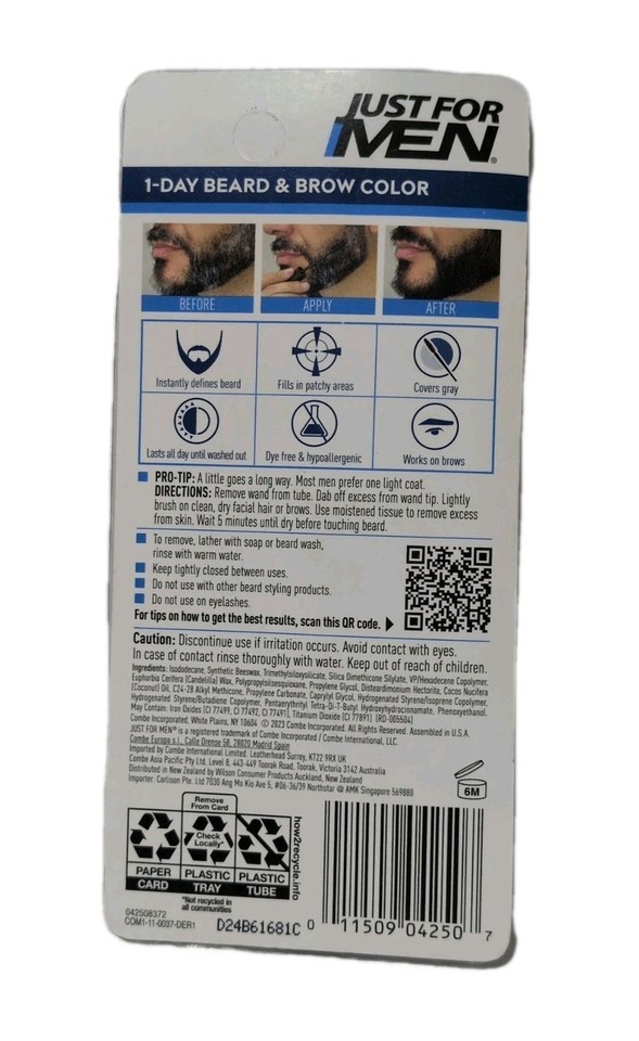 - Just For Men 1-Day Beard & Brow Color Black Temporary Color NEW
