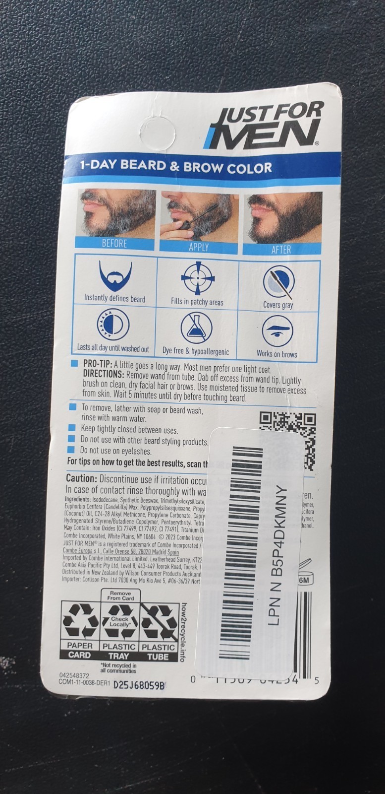 - Just For Men 1-Day Beard & Brow Temporary Color Darkest Brown / Black (0.3 Oz)