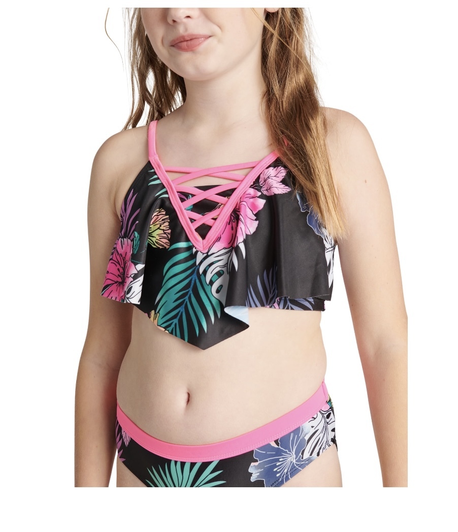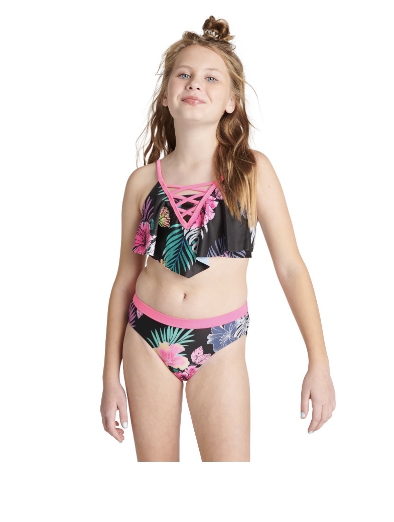 - Justice Girls 2 Piece Flounce Laced Top Bikini Swimsuit Black