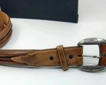 - Justin Mens Barbed Wire Fenced in Leather Belt Tan Rodeo C10817 Western Size 44
