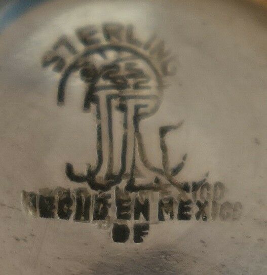 Mexican sterling silver candlestick made by Juventino Lopez Reyes. The candlestick measures 5" tall x 2 3/4" diameter and weighs 4 ozt. It is not monogrammed and is in excellent condition (a few minor rattle sounds if you shake).