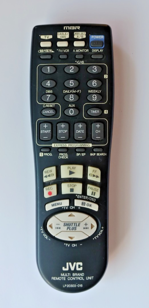 - JVC MBR LP20303-015 Multi Remote for VCR HR-S3800U HR-S3900U HR-S4800U and More.