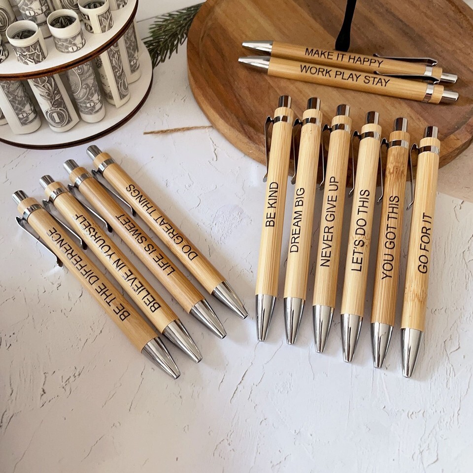 - Jxueych Bamboo Retractable Ballpoint Pens 12 Pack Black Ink 1mm Motivational