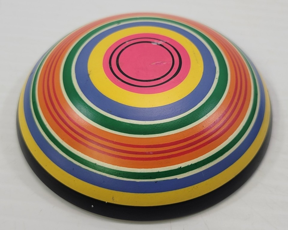 K) Wooden Rainbow Trinket Jewelry Pill Box with Lid 4"