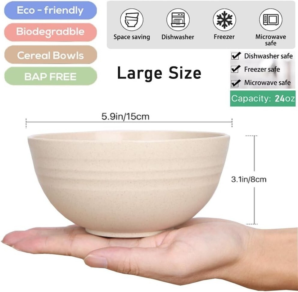 K Y KANGYUN Unbreakable Wheat Straw Cereal Bowls - 24 oz Reusable Set of 4