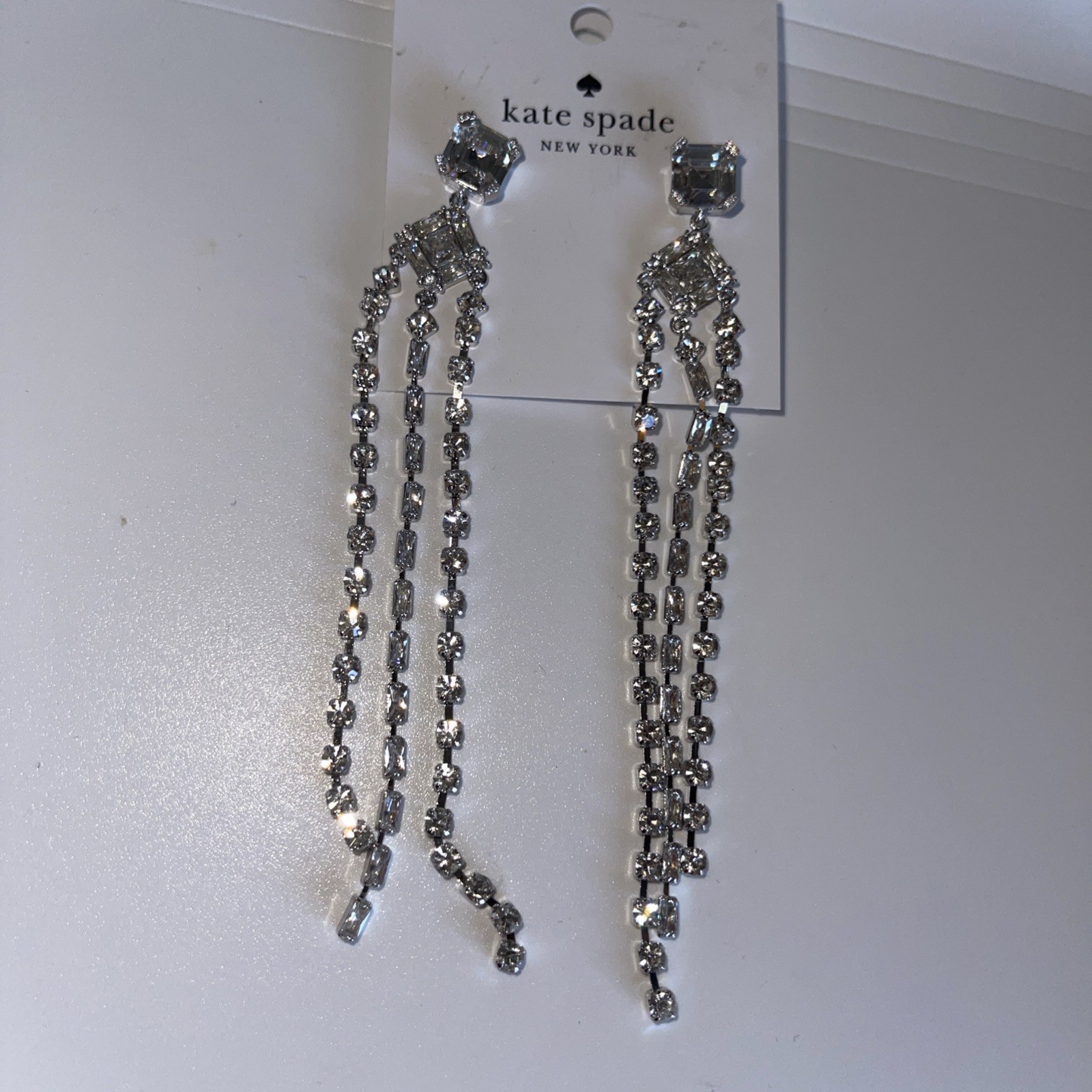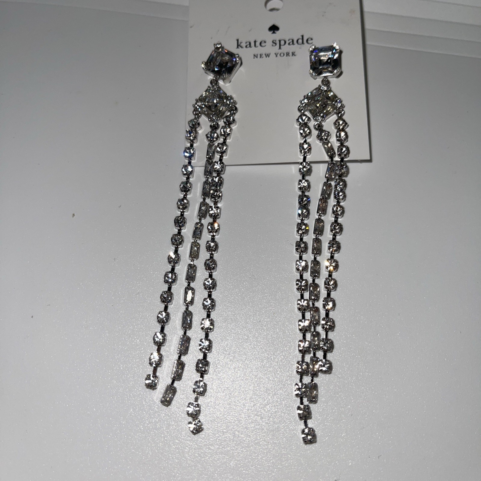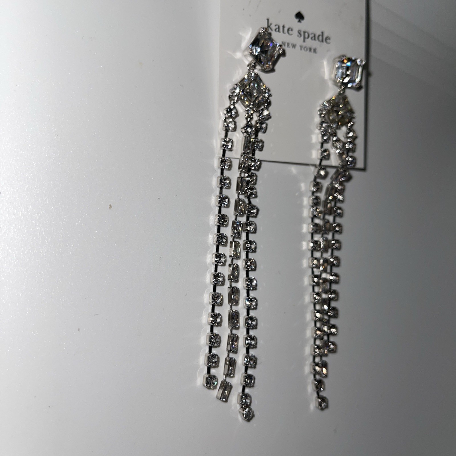 - KATE SPADE Statement Shimmy Fringe Silver clear long Earrings new $129