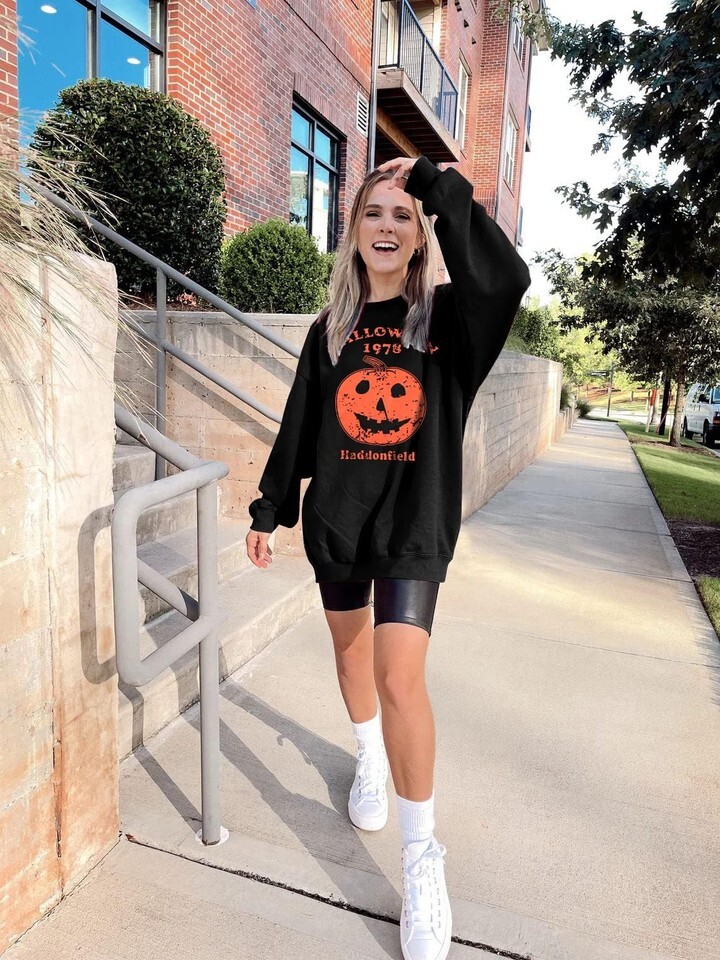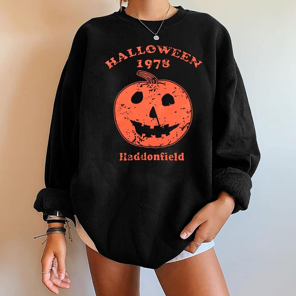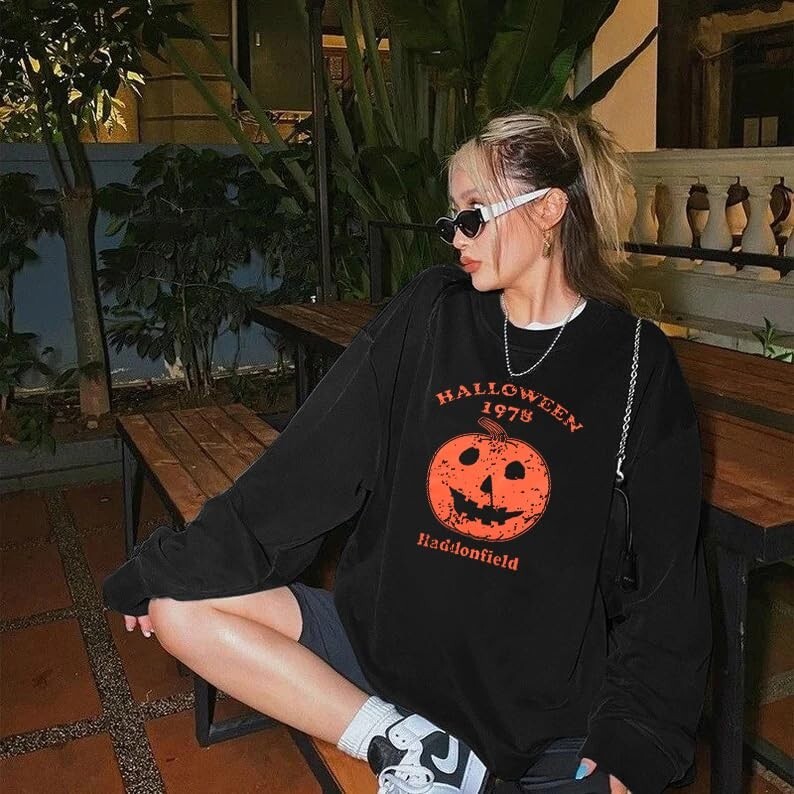 Designs: Halloween crewneck sweatshirt,pumpkin sweatshirt, oversized design, pumpkin graphic shirt with drop shoulder, Loose, 1978 letter print blouse, halloween rustic, sanderson sisters tees,fall tops blouse, hocus pocus long sleeve for women halloween party.
