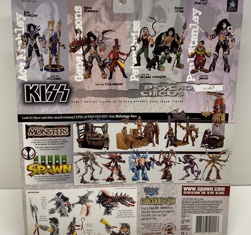 This KISS Psycho Circus action figure of The Ringmaster is a must-have for any fan of the band or collector of vintage toys. Released in 1998 by McFarlane Toys, this figure is part of the Psycho Circus series and comes in its original packaging from Spencer Gifts.