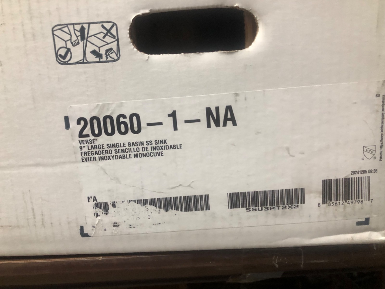 Packaging: Opened for inspection only; sink is factory sealed inside