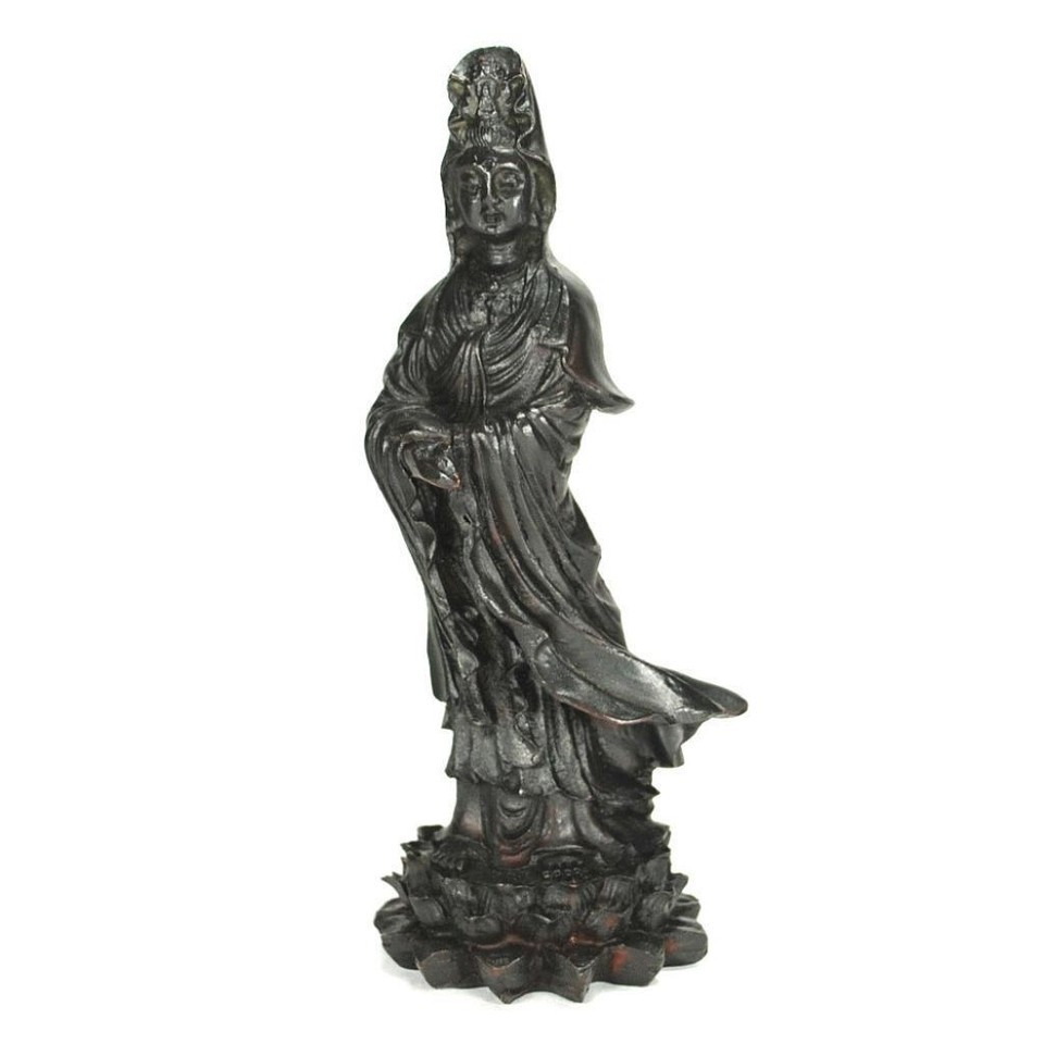 - KWAN YIN STATUE 5.25" Buddhist Compassion Goddess Dark Resin Quan Guan Guanyin