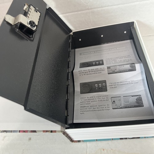 KYODOLED Hidden Metal Lock Box Diversion Book Safe w/Combo Lock Route 66 Design great condition I see a little part on the spine where the artwork is starting to peel a little . Also a little dent on spine