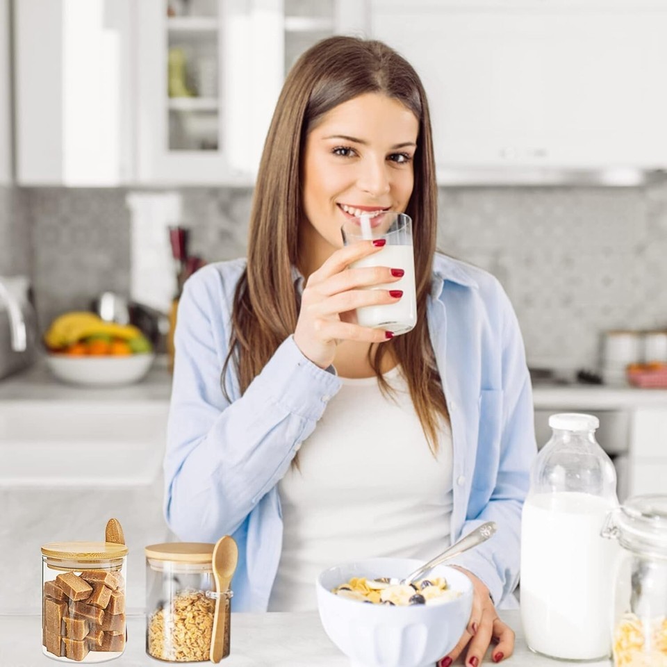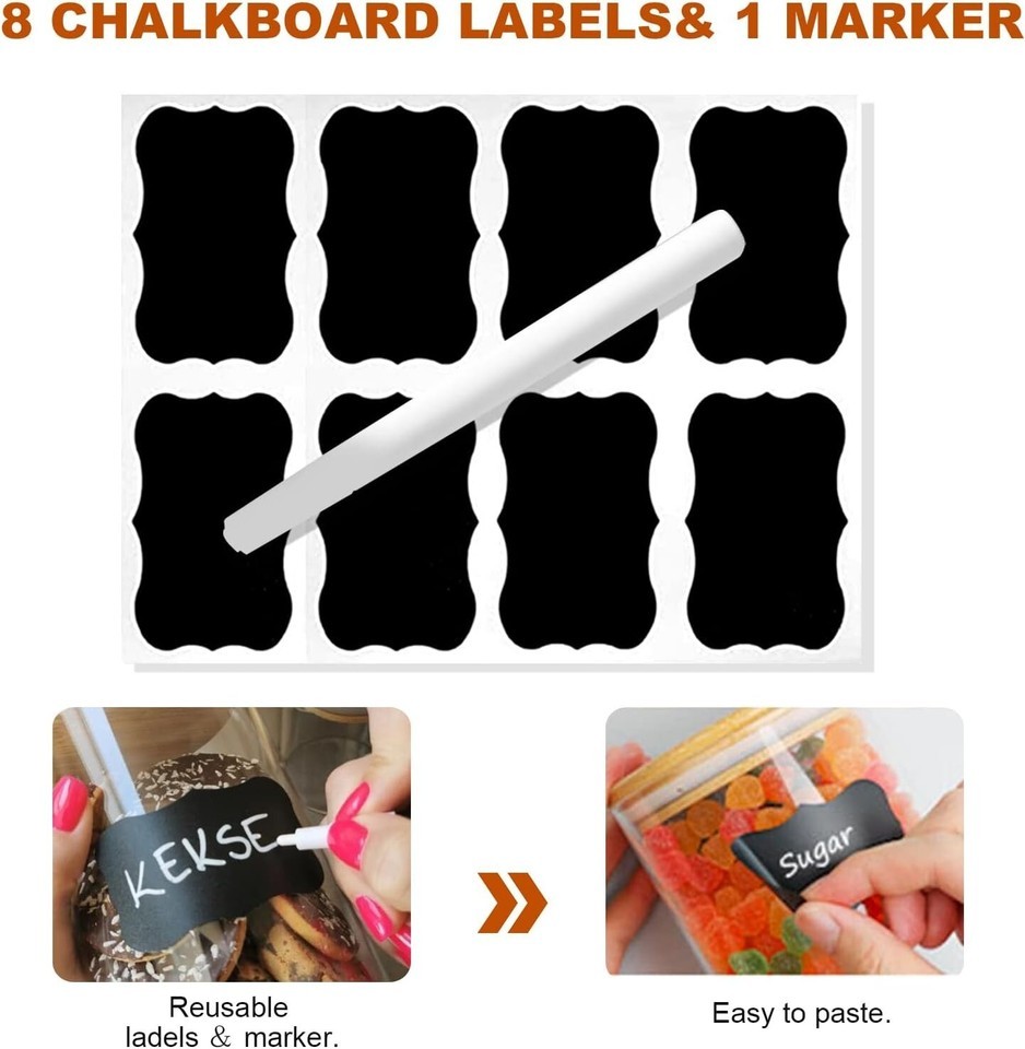 ?WIDE APPLICATIONS? The glass kitchen canisters for pantry organization and storage are suitable for storing various dried ingredients to retain their freshness, such as oatmeal, cookie, nuts, beans, candy, snack, spices, and tea. With clear glass jars, you can easily see inside and quickly find the ingredients you need.
