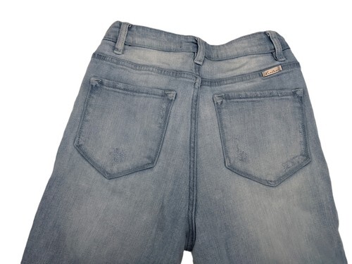 KANCAN Size 5/26 HIGH RISE BUTTON FLY SUPER SKINNY JEANS . Light destroyed wash. Lots of stretch. Super cute button fly. Frayed hem . Excellent condition.