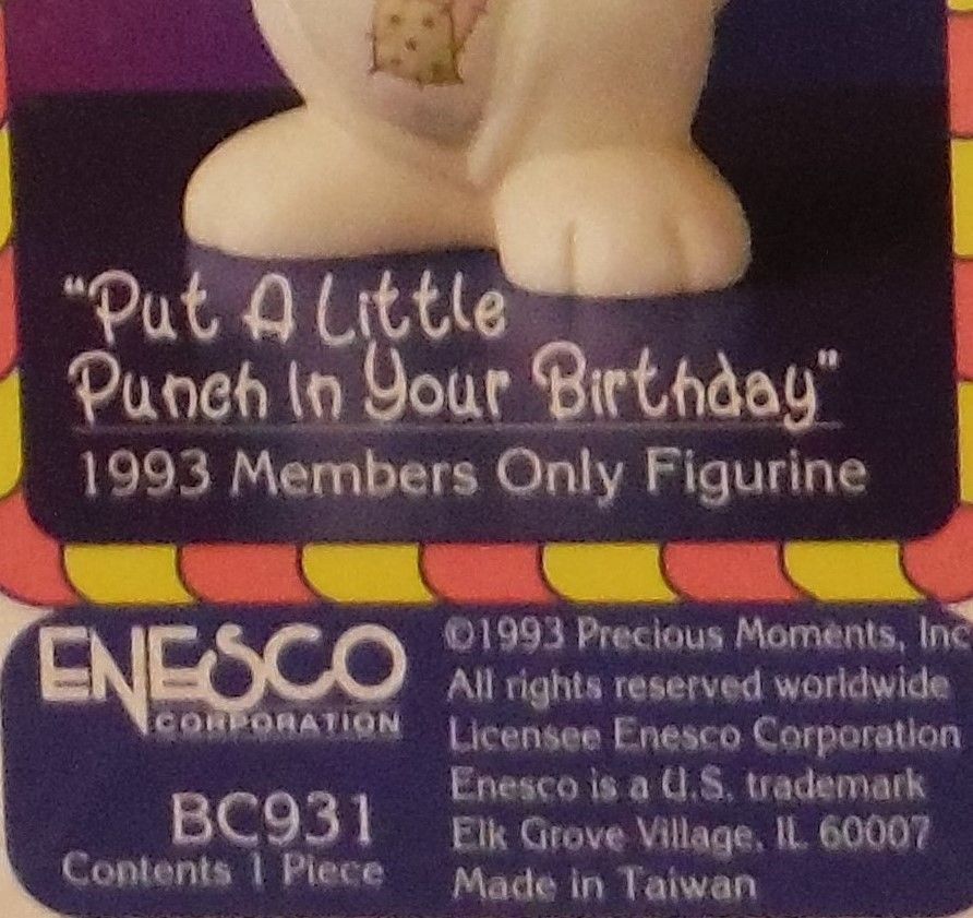 Precious Moments Figurine Bc931 Put a Little Punch in Your Birthday MIB