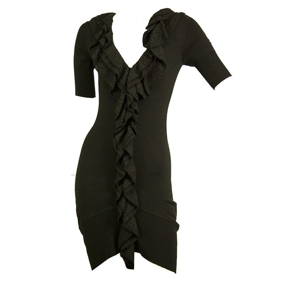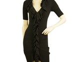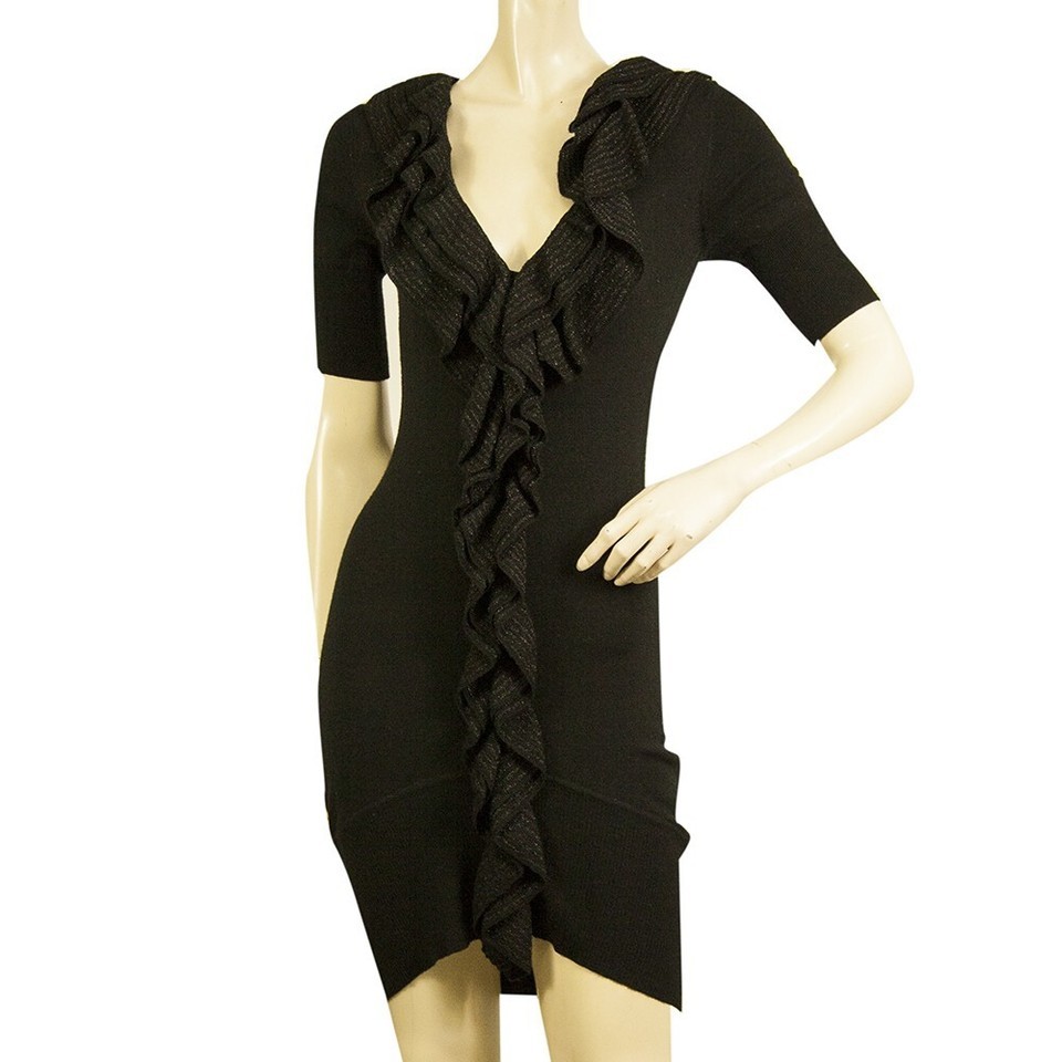 - Karen Millen Black Ruffled Front Mini Length Short Sleeve Woolen Knit dress Sz 1