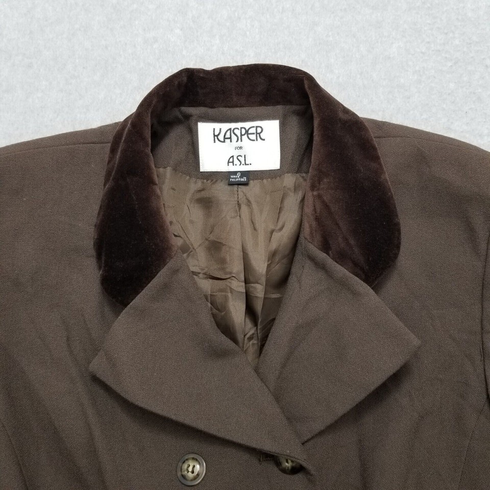- Kasper Blazer Jacket Womens 8 Brown Pockets Buttons