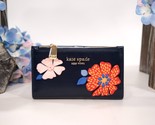 - Kate Spade Dottie Bloom Parisian Blue Flower Leather Slim Bifold Wallet NWT