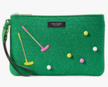 - Kate Spade Tee Time Embellished Astroturf Grass Gold Ball Wristlet Clutch ~NWT~