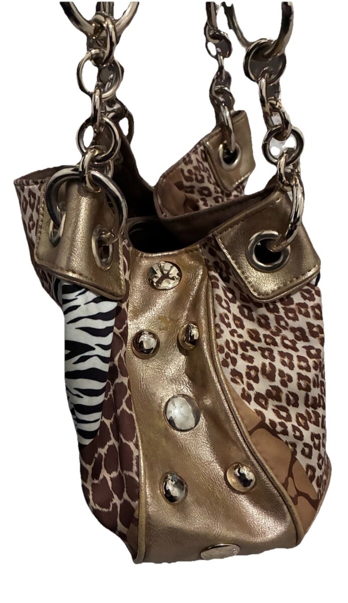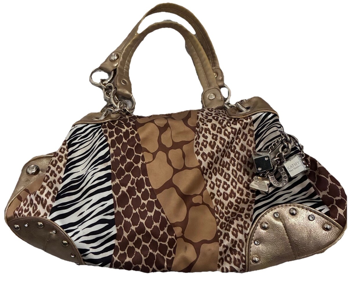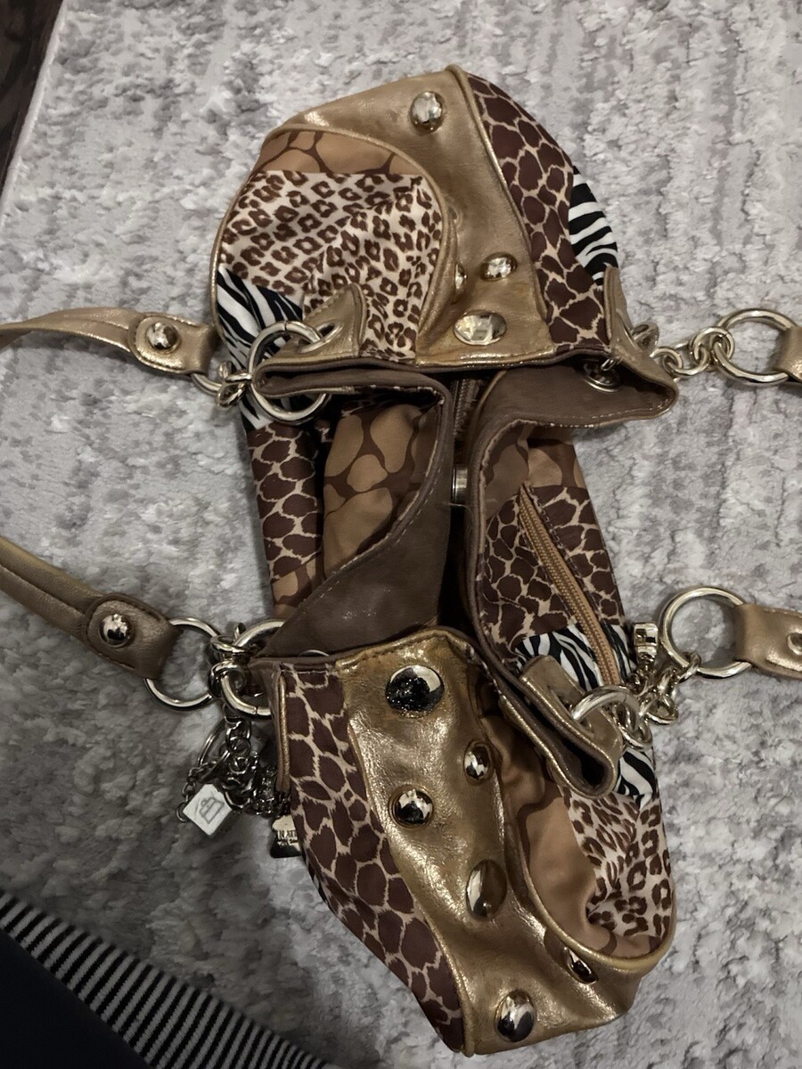 Kathy Van Zeeland y2k 00s Animal Print Gold Shoulder Bag Jersey Shore Stud Charm