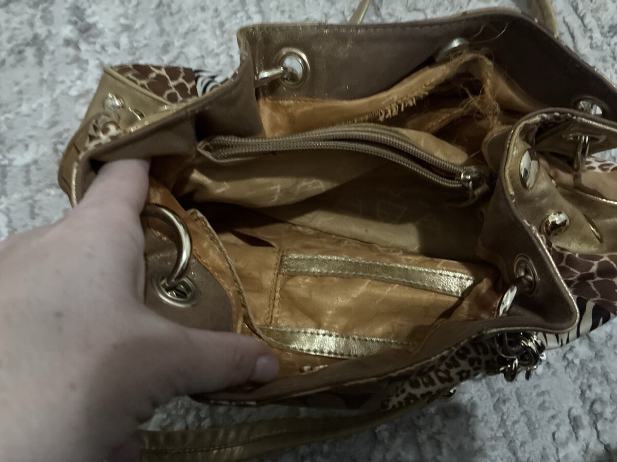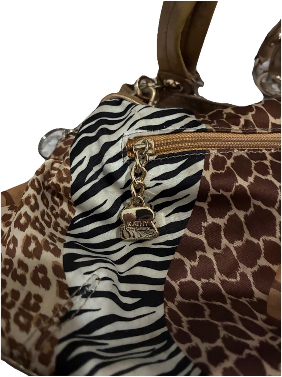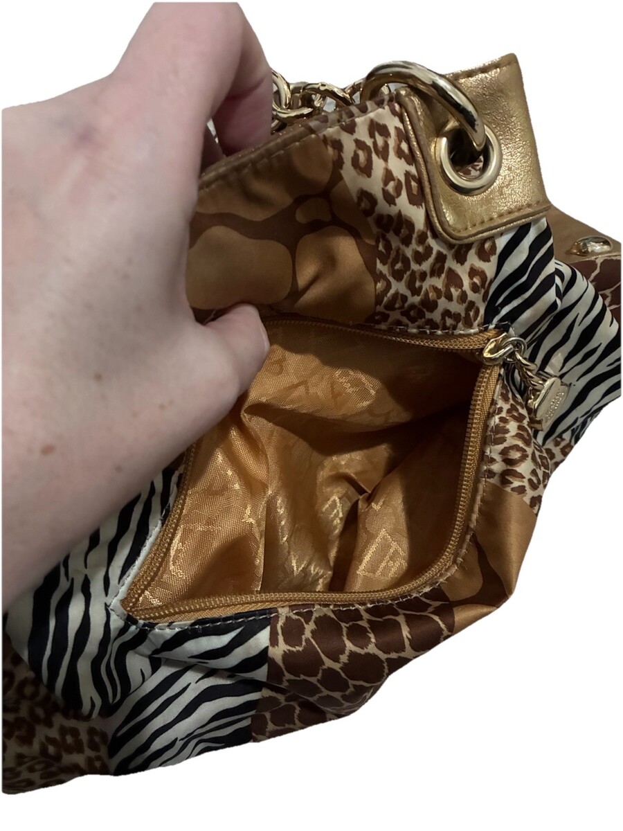 Kathy Van Zeeland y2k 00s Animal Print Gold Shoulder Bag Jersey Shore Stud Charm