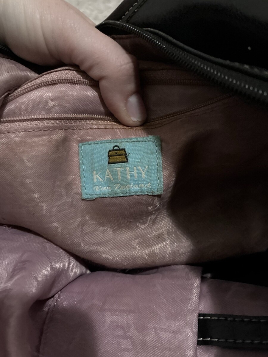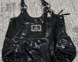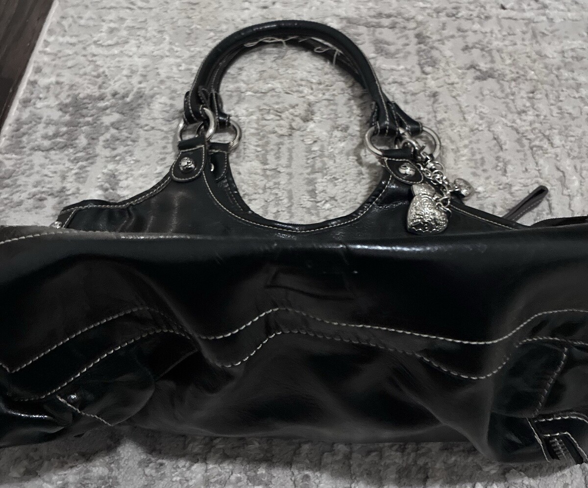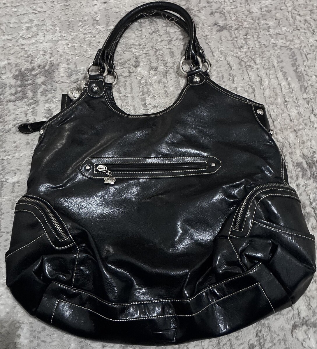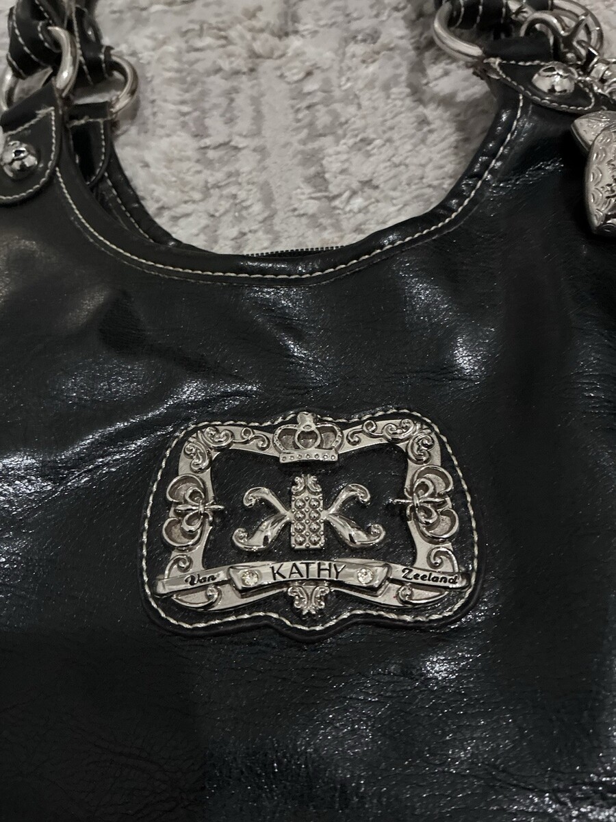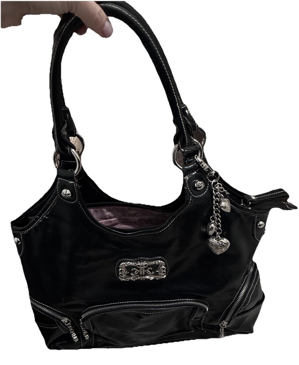 - Kathy Van Zeeland y2k 2000s Black Large Faux Leather Glam Shoulder Bag Charms