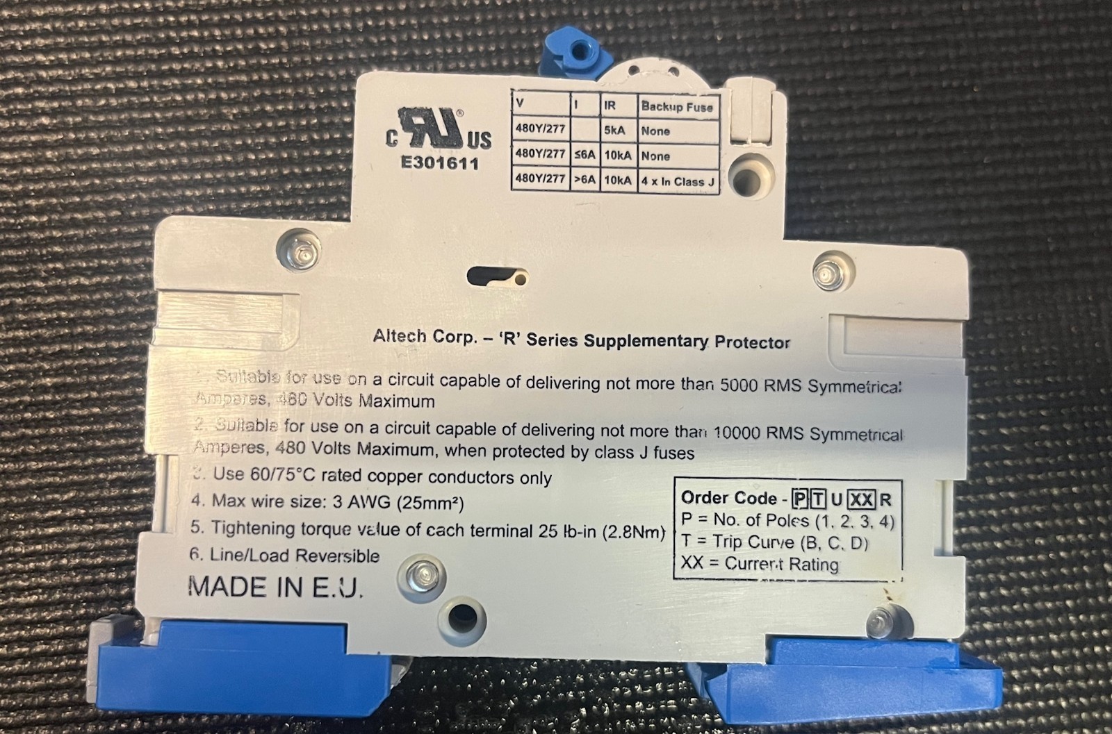 Standards: UL1077 Recognized, IEC 60947-2 compliant
