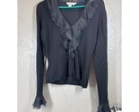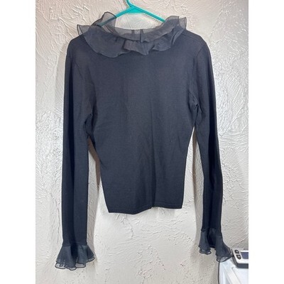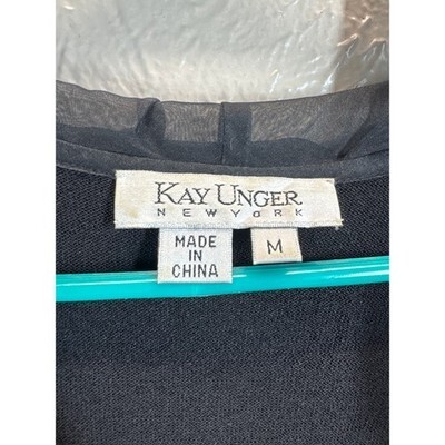 - Kay Unger New York Black 100% Silk Wrap Blouse Ruffle Trim Long Sleeve Medium