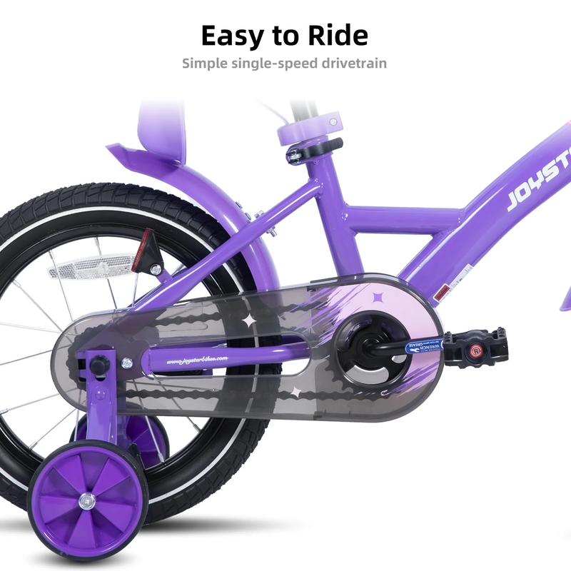 JOYSTAR Keano Kids Bike for Boys and Girls Designed for kids, this durable, low-maintenance bike features training wheels, adjustable seat, foot brake, and a safe chain guard. Comes 85% assembled. Select from sizes 10"-16" based on your child's height for a perfect fit.
