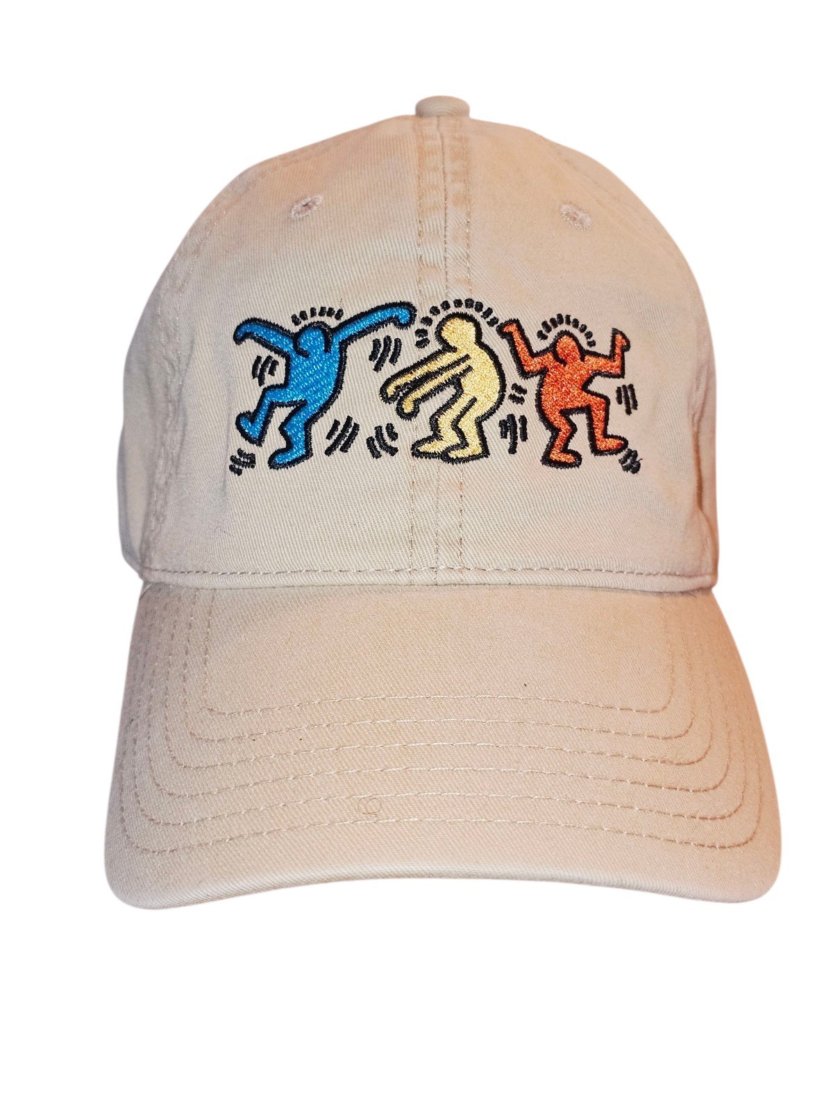 - Keith Haring Mad Engine Dancing Figures Art Adjustable Khaki Strap Back Hat