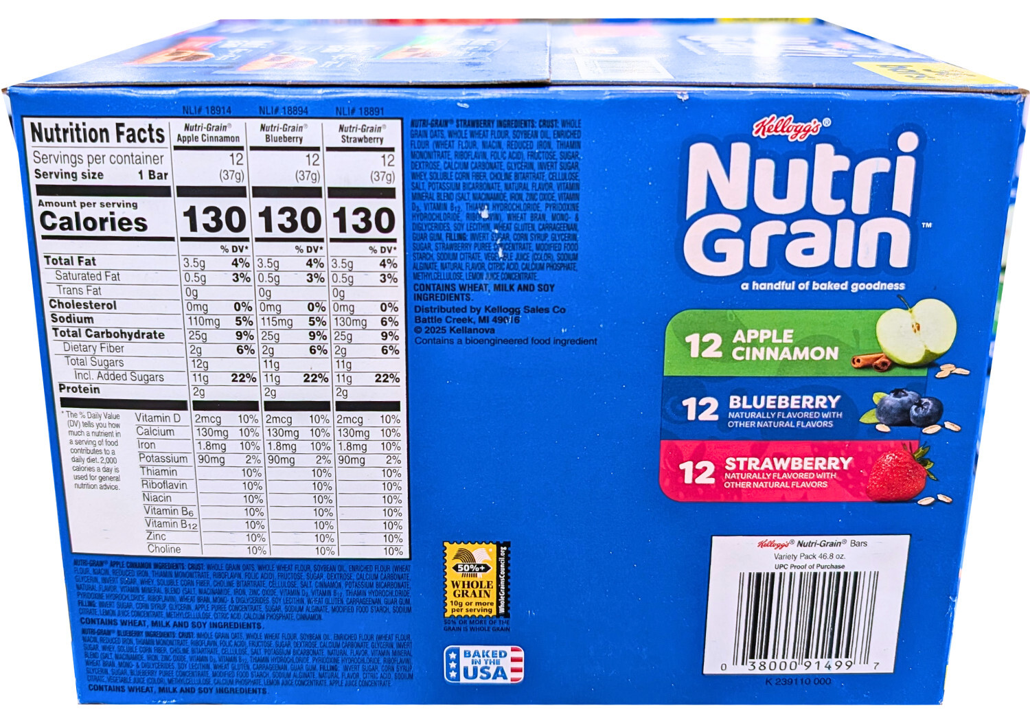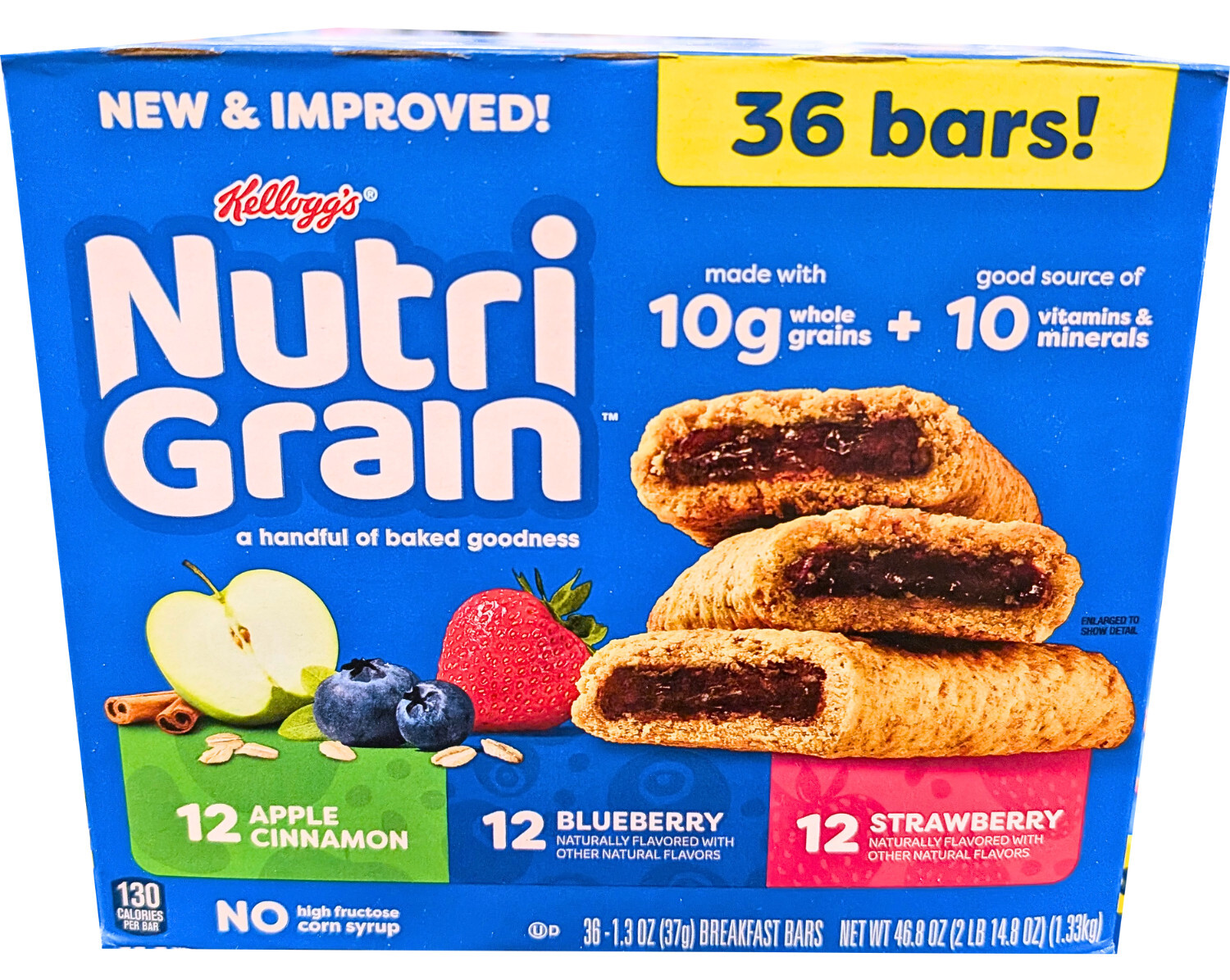- Kellogg's Nutri-Grain Bars Variety Pack 36 Packs x 1.3 Oz EXP 01/2026