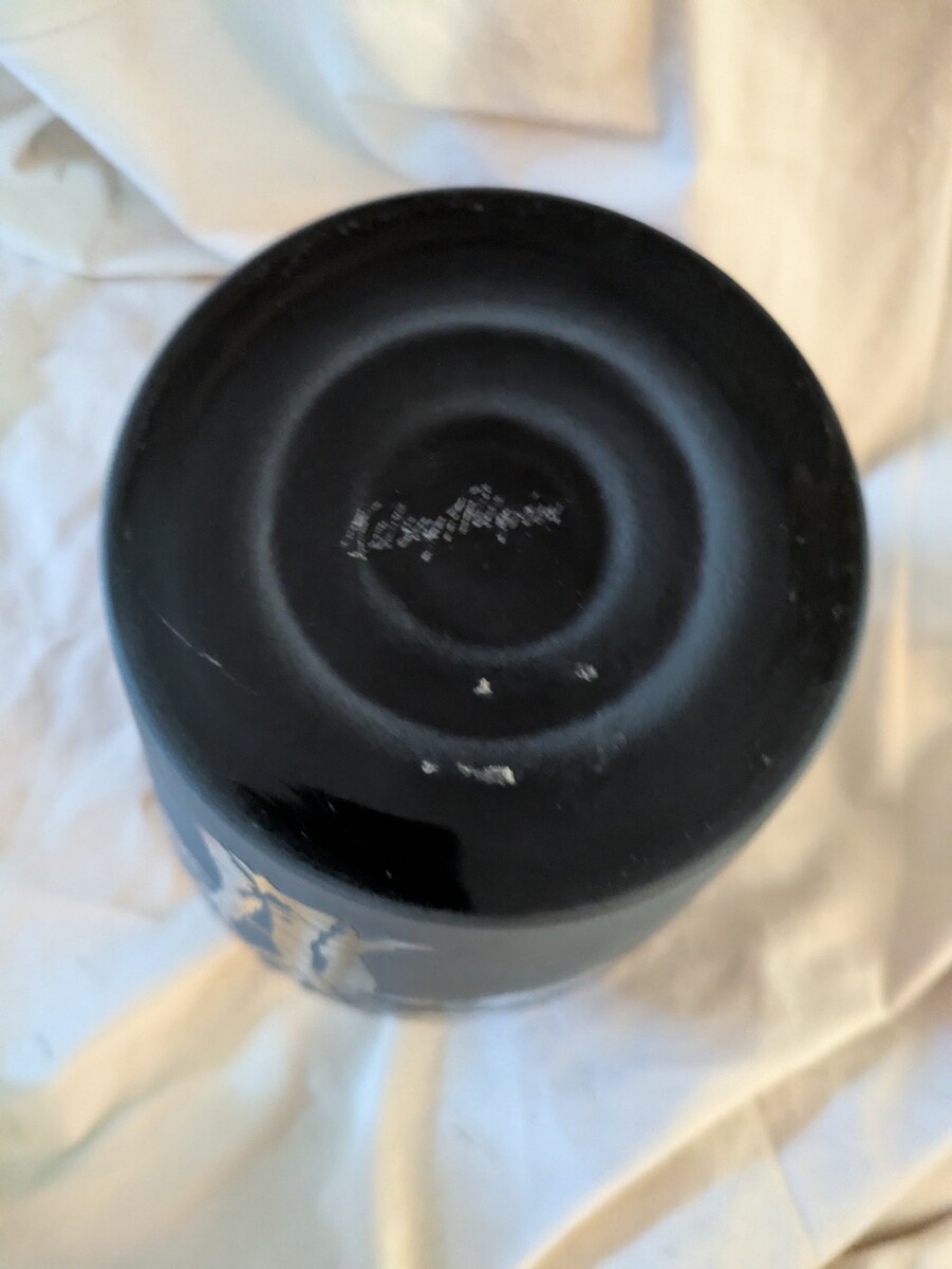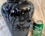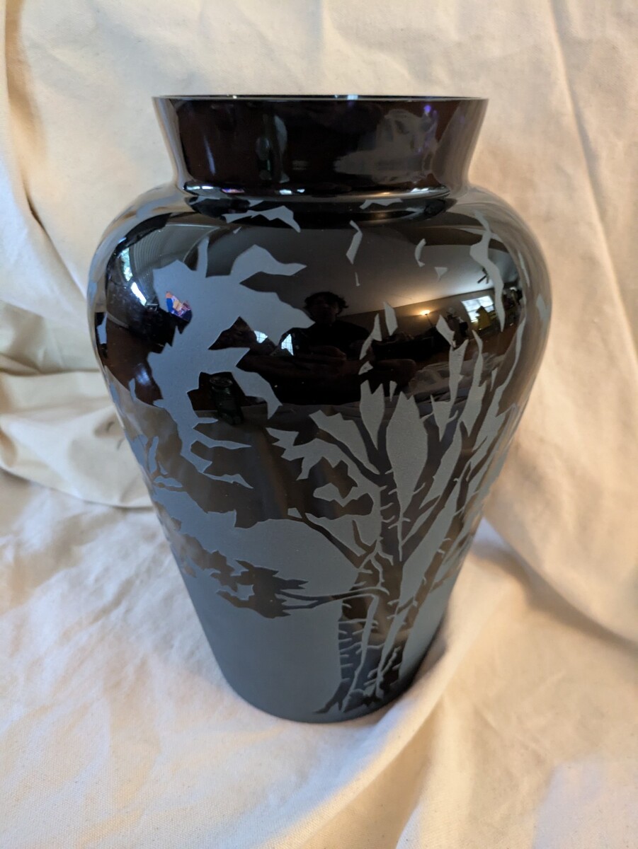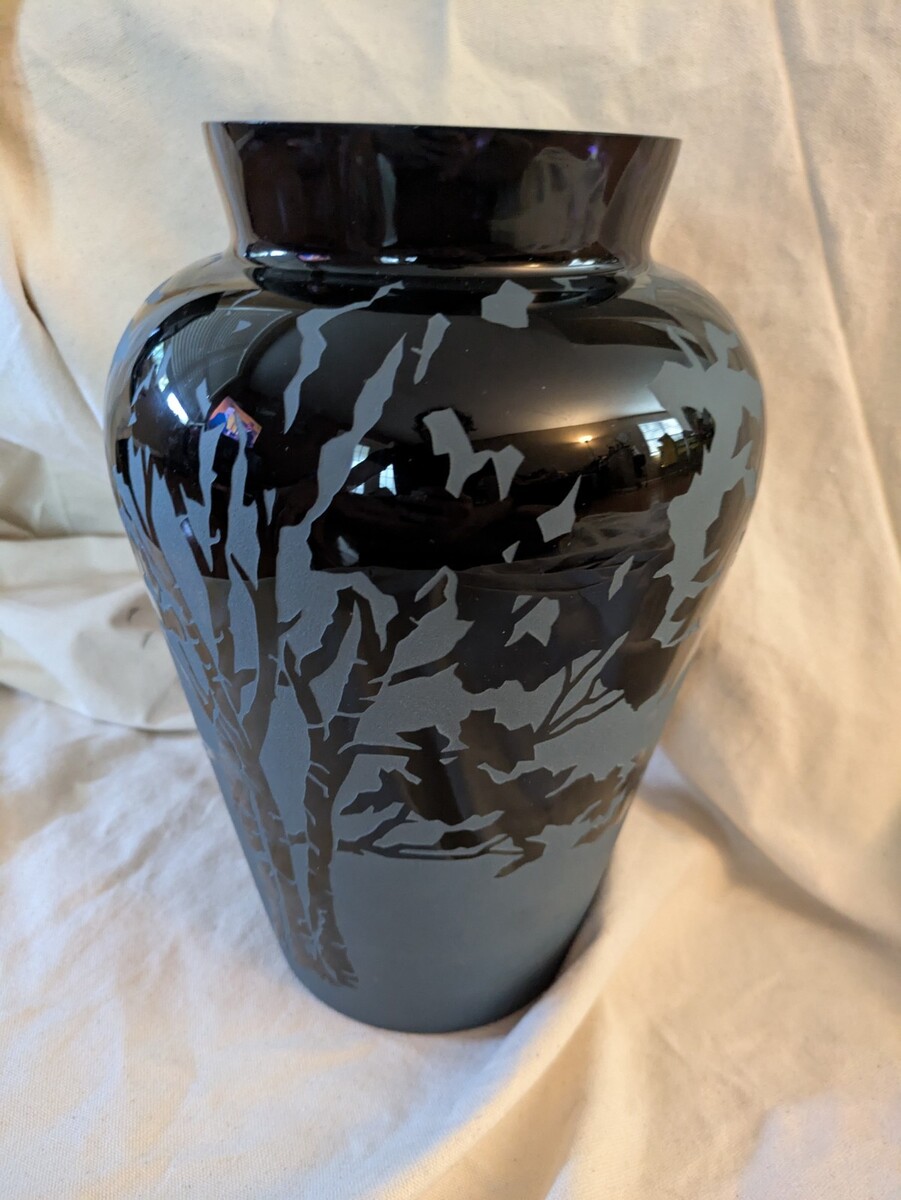 - Kelsey Murphy Pilgrim Art Glass Sand Carved Cameo Urn Vase Black Signed 11