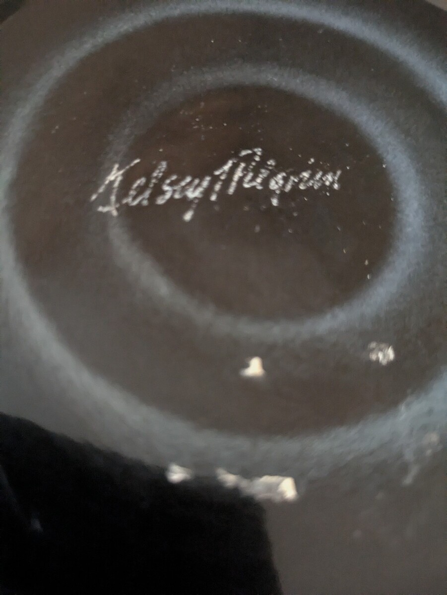 The Kelsey Murphy Pilgrim Art Glass Sand Carved Cameo Urn Vase is a stunning piece of decorative pottery and glassware. Standing at 11 inches tall, this black urn vase is hand-blown glass with intricate carvings, making it a unique and eye-catching addition to any home decor. Signed by the artist, this art glass piece exudes a sense of elegance and craftsmanship that is sure to impress. Perfect for collectors or those looking to add a touch of sophistication to their space, this vase is a true statement piece.