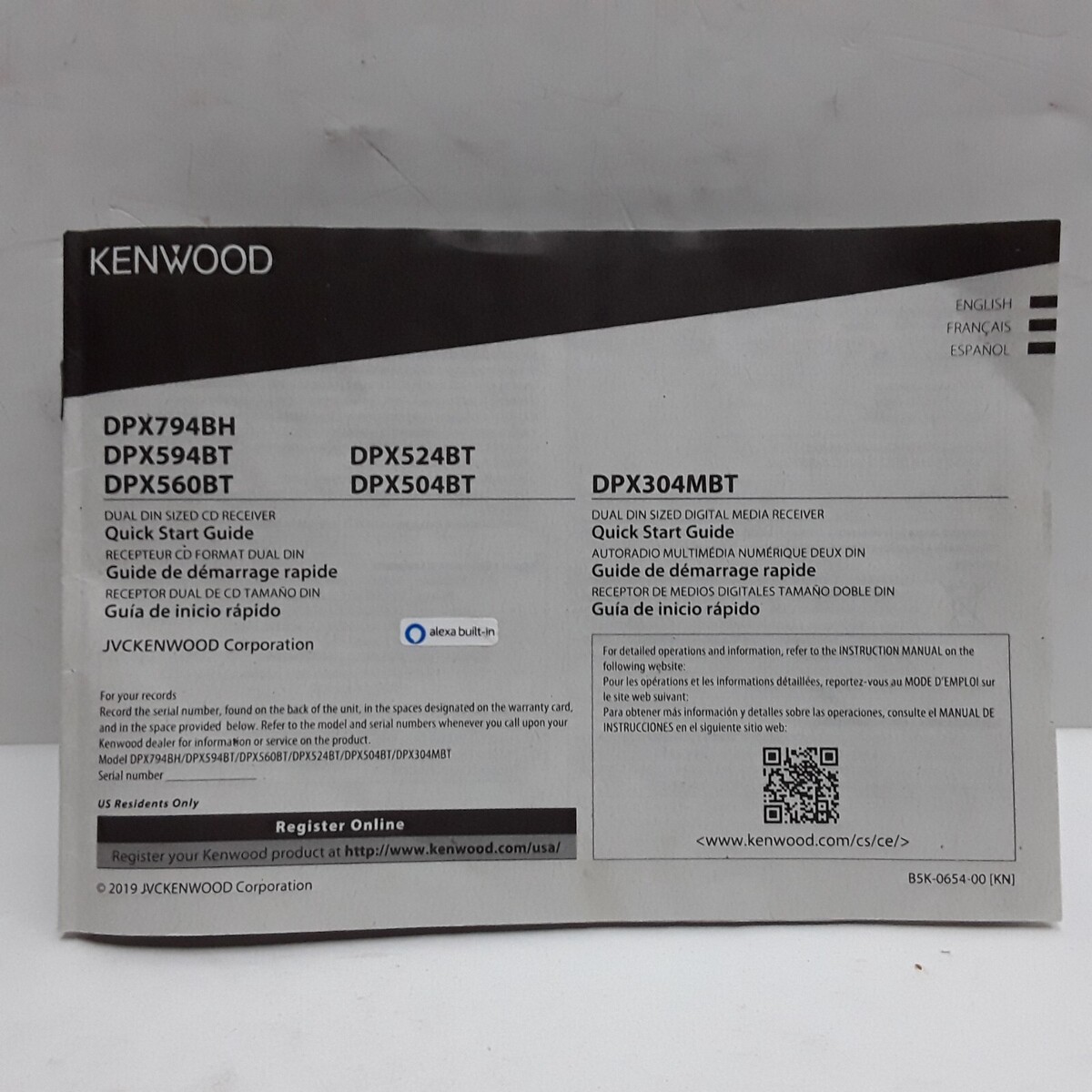- Kenwood DPX794BH DPX594BT DPX560BT DPX524BT DPX504BT DPX304MBT quick start guide