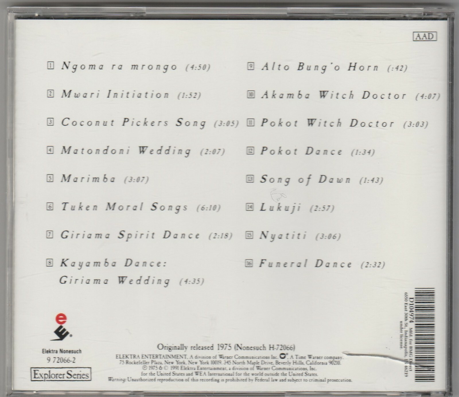 - Kenya & Tanzania: Witchcraft & Ritual Music by Elektra Entertainment