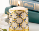 Keren Kopal Golden Metal Round white Candle Holder Decorated &Austrian Crystals