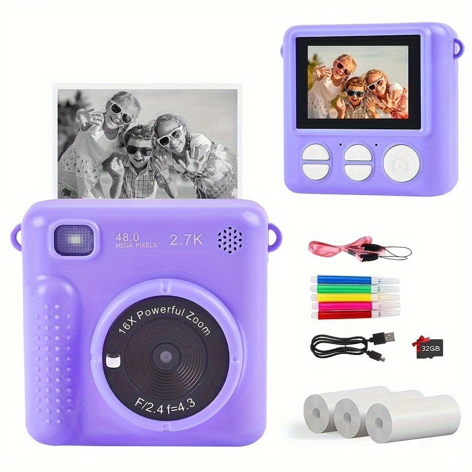 - Kids Instant Print Camera 1080P Video 2.4" Screen w/ 32GB Card & Paper Gift Set