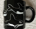Cool black ceramic mug with killer whales on all sides in relief. Mug shows no signs of use and has bright finish. 3 5/8" height.