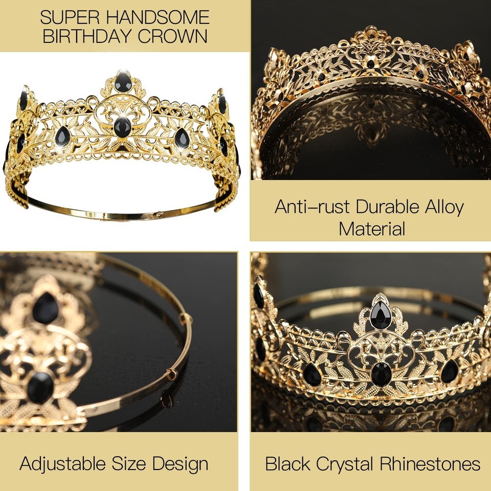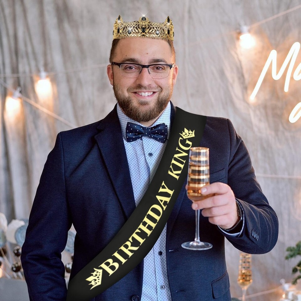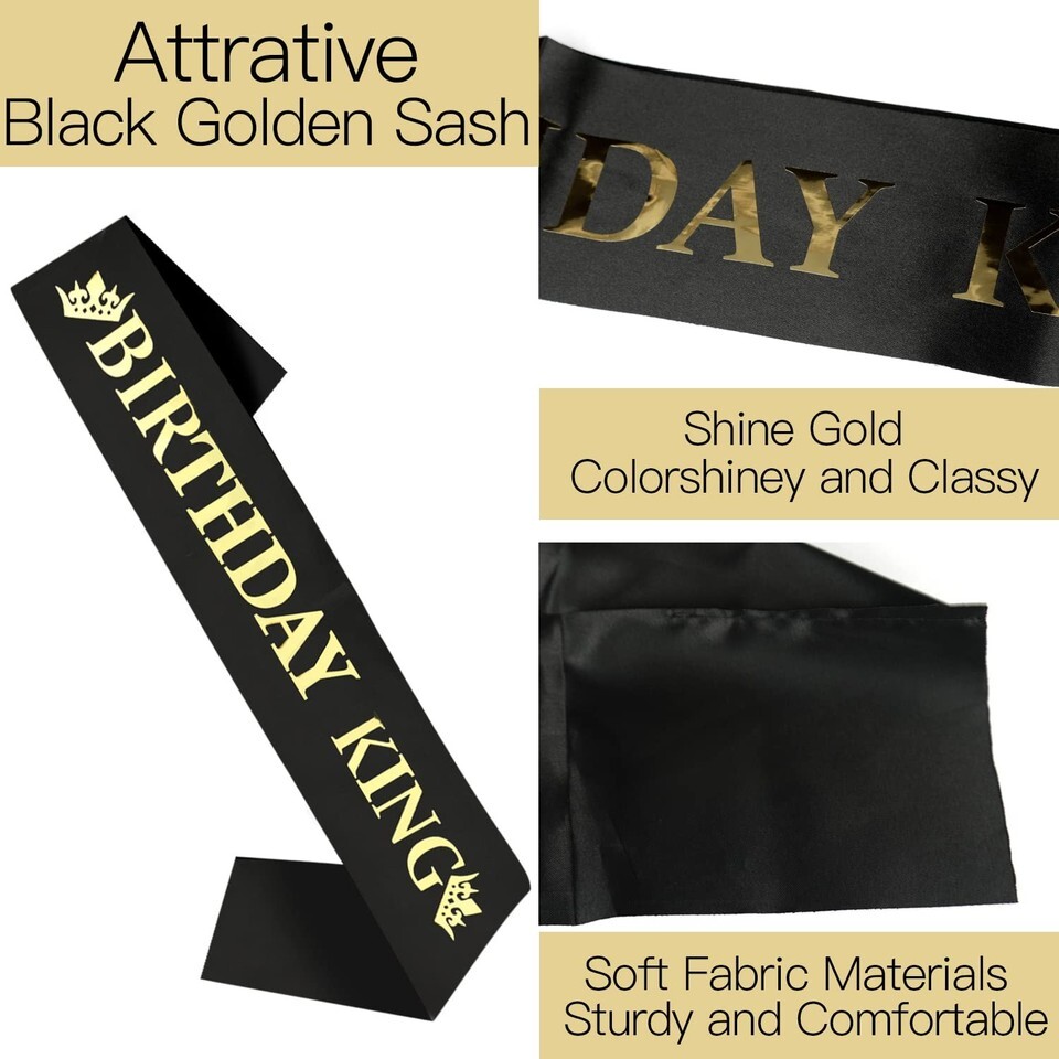 ELEGANT DESIGN IN GOLD BLACK: Classic gold combined with stylish black rhinestones for a luxurious, regal look. Designed to stand out, making the birthday king the center of attention at any event.