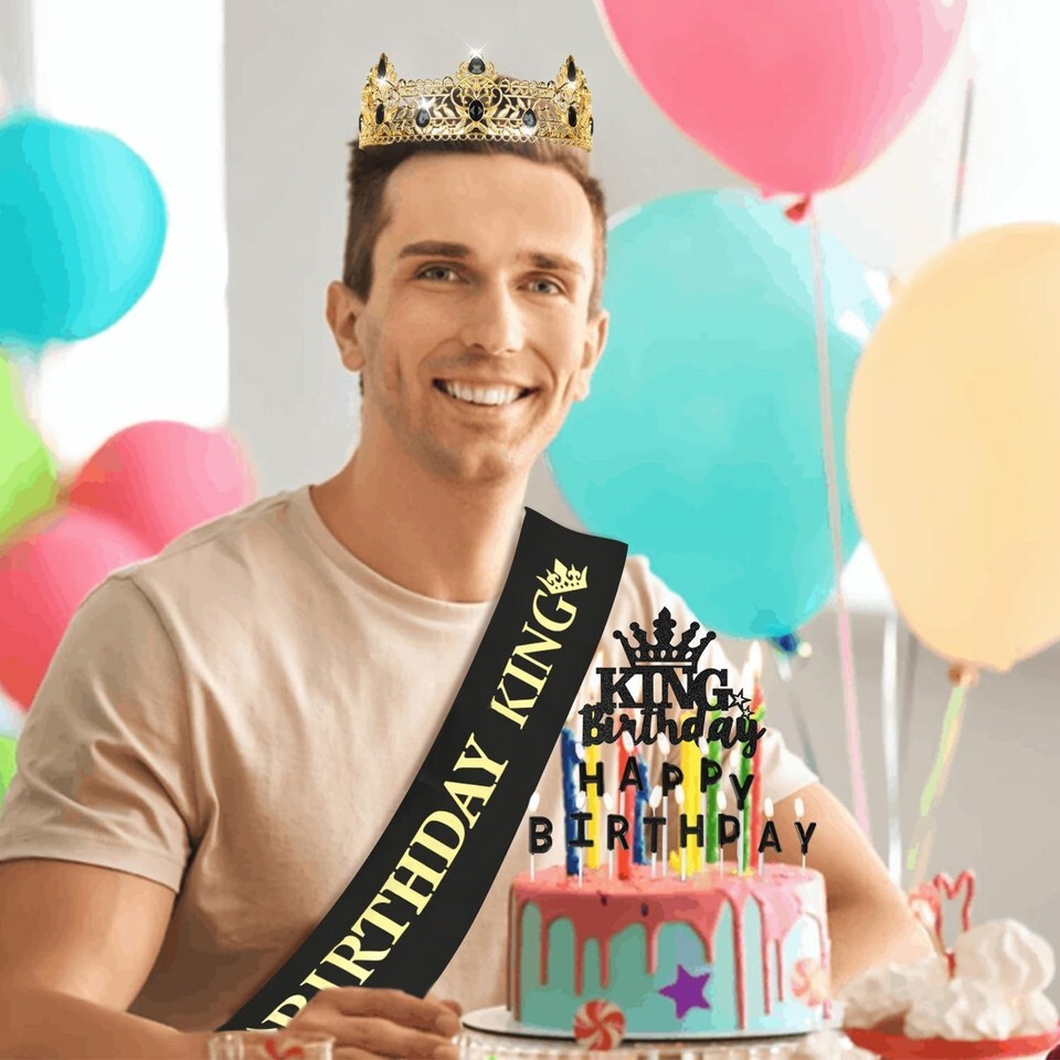COMPLETE BIRTHDAY KING SET: Includes a gold king crown for men, black-and-gold ?Birthday King? sash, 13pcs Happy Birthday candles, and a pin. Everything you need to celebrate in style and create a fun party atmosphere.