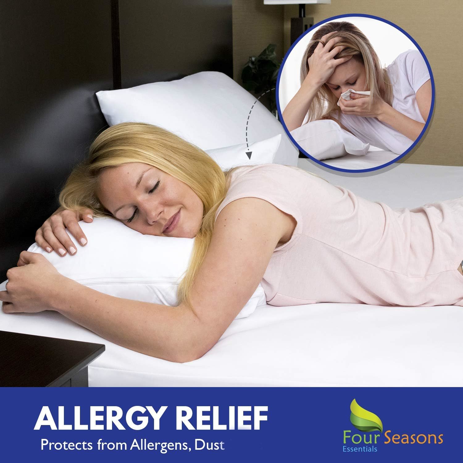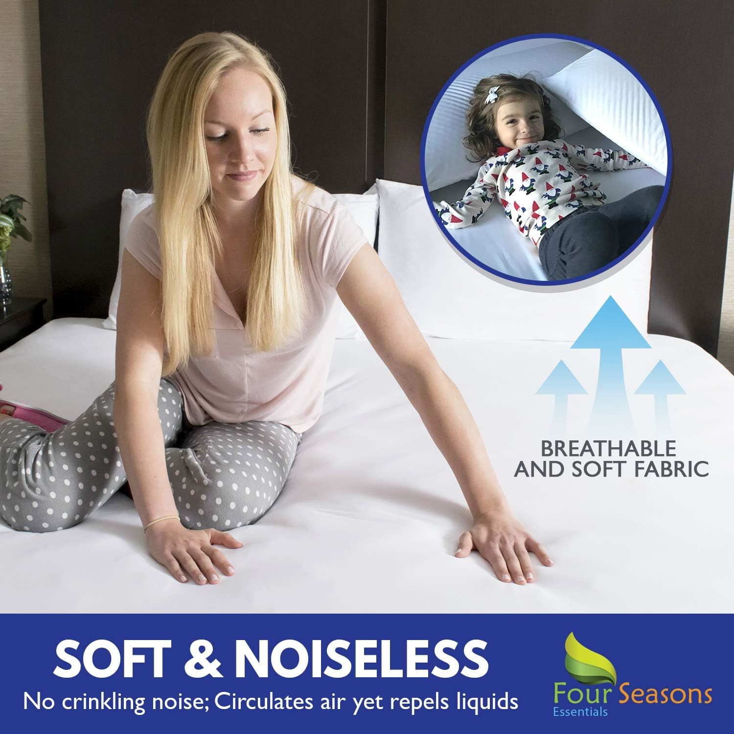 Four Seasons Essentials six-sided zippered mattress protector fully encases your mattress or box spring on all sides and offers protection against liquids, moisture, dust. Our Premium mattress protectors are hypoallergenic, noiseless and made of soft breathable fabric.