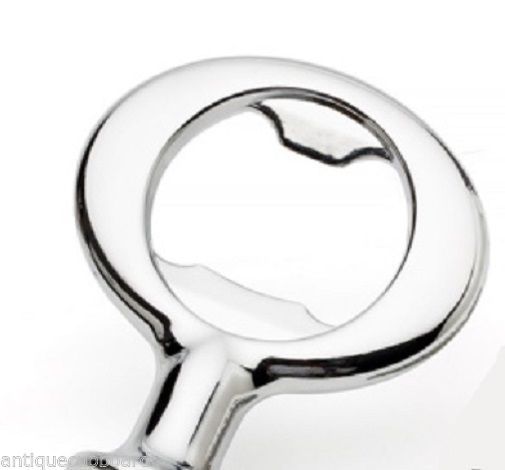 This bottle opener features long lasting chrome plating and opens traditional bottle caps.
