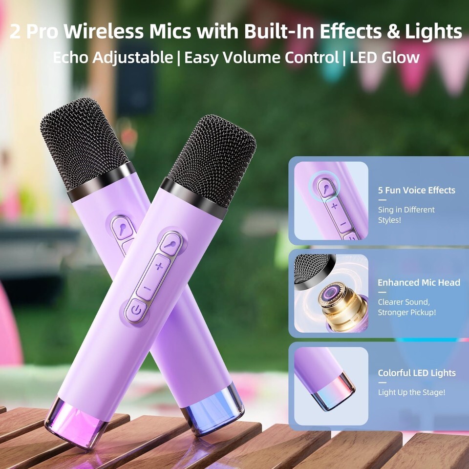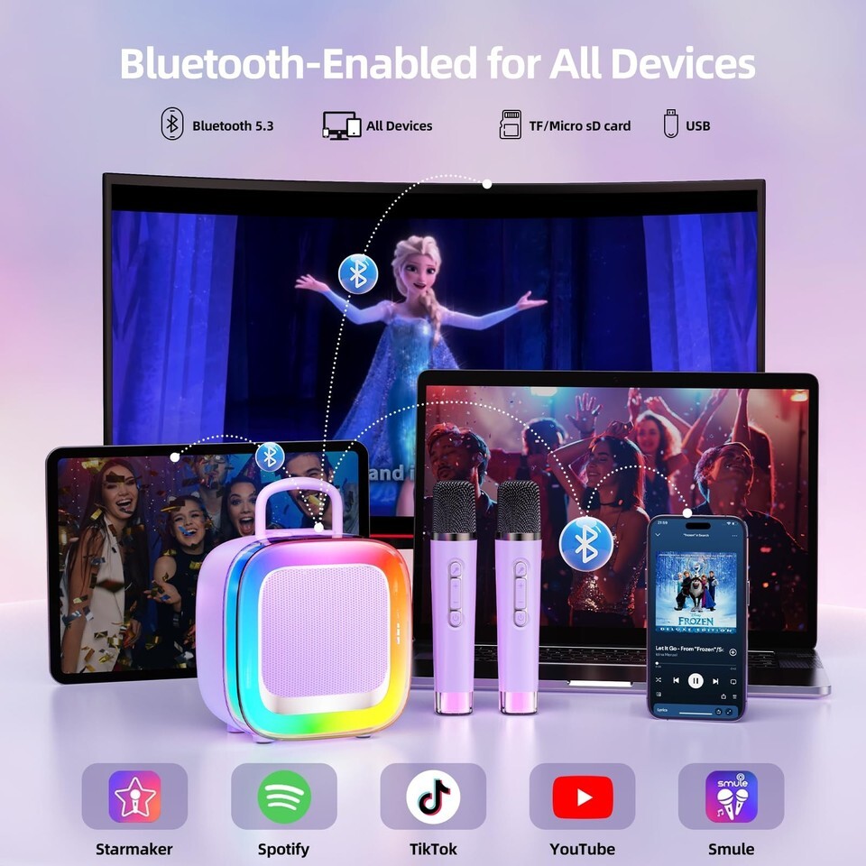 - Kinglucky Karaoke Machine Kids 2 Mics Purple 3-12 Years Birthday Gift