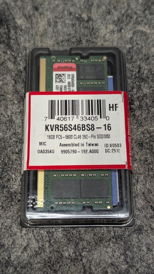 - Kingston Technology ValueRAM KVR56S46BS8-16 16 GB 1 x 16 GB DDR5 5600 MHz 262-pi