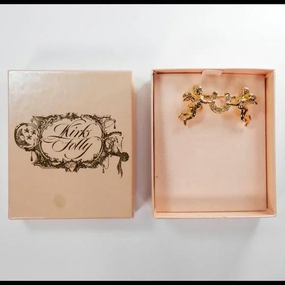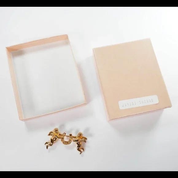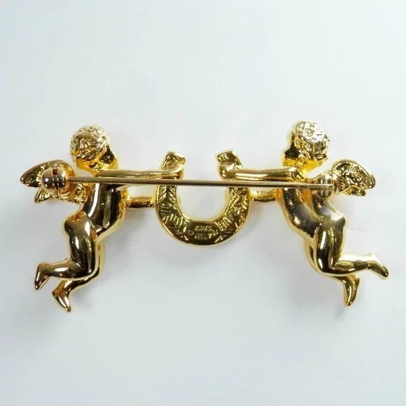 - Kirks Folly Aurora Borealis Rhinestone Cherubs Lucky Horseshoe Gold Tone Pin 2"