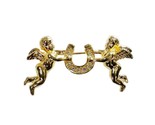 Kirks Folly Aurora Borealis Rhinestone Cherubs Lucky Horseshoe Gold Tone Pin 2"