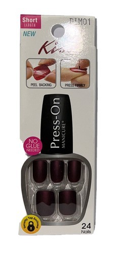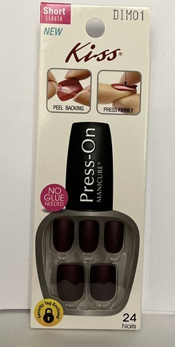- Kiss Press On Nails Squoval Short Dark Red/Wine Satin #DIMO1 Sticky Sweet SEALED