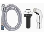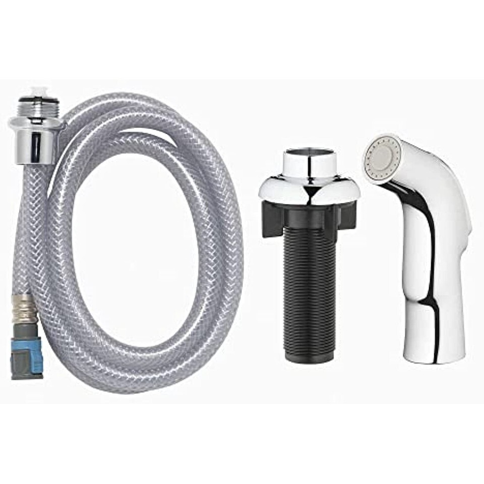 Highlights: Finish: Chrome Coastal, Essentials, Tucana, Pacifica kitchen faucets Detachable Hose: No Flow Rate: 1.8 gpm Hose Material: Rubber Hose Included: Yes Includes spray head, hose and mounting gasket For use on MFG: 67814W-1101, 67157-1101, 67534-1001, 810NC-F5001, 810N-D4101, 67210-2501 Packaging Type: Blister Card