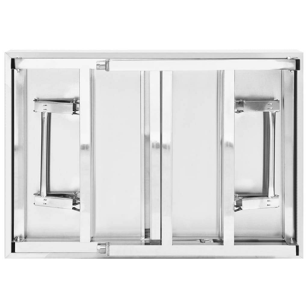 Color: Silver Material: Stainless steel Dimensions: 34" x 24" x 32" (L x W x H) Foldable design Easy to clean Assembly required: Yes California Proposition 65