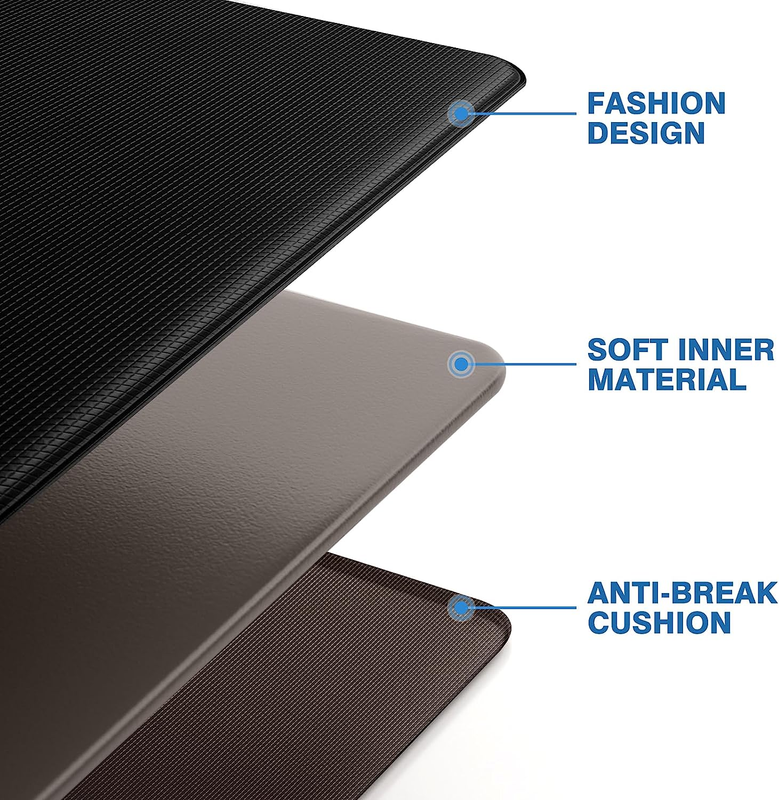 Non-Slip Design: This standing mat features non-slip backing to keep it securely in place on various surfaces like tile, wood, ceramic, and marble. For optimal safety, always place the kitchen mat on dry, flat surfaces