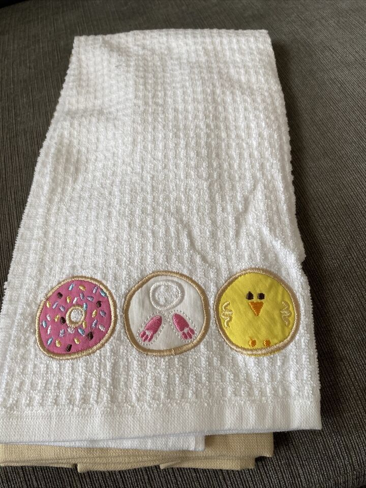 - Kitchen Towels Set of 2 dish hand Waffle Weave Ran White Chick Bunny New Casaba